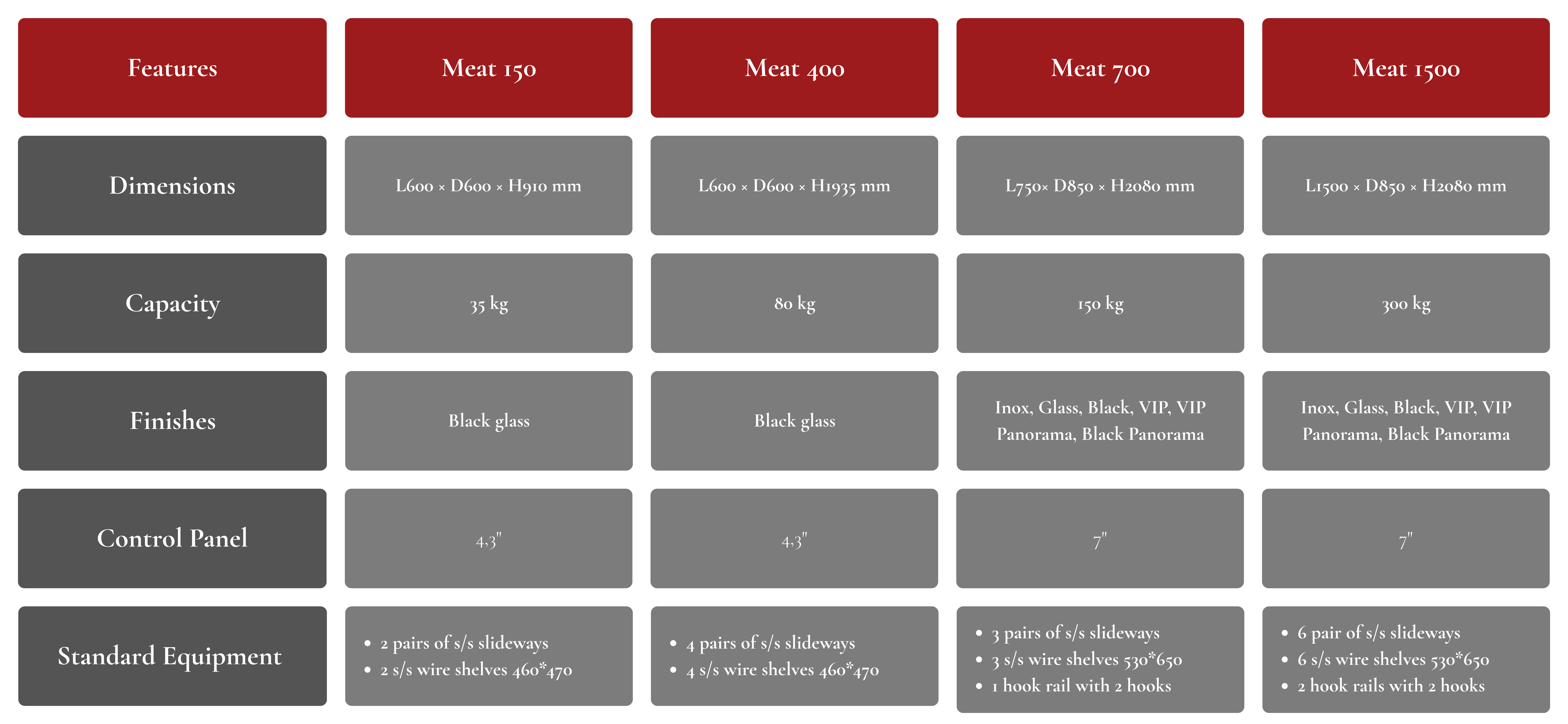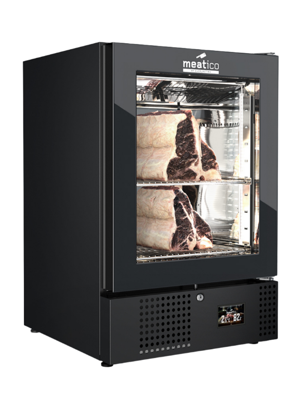 The Meatico MEAT 150 is a compact professional dry aging cabinet designed for restaurants, butcheries, and specialty shops with limited space. With a 35 kg capacity, it delivers full-scale dry aging performance in a countertop format.